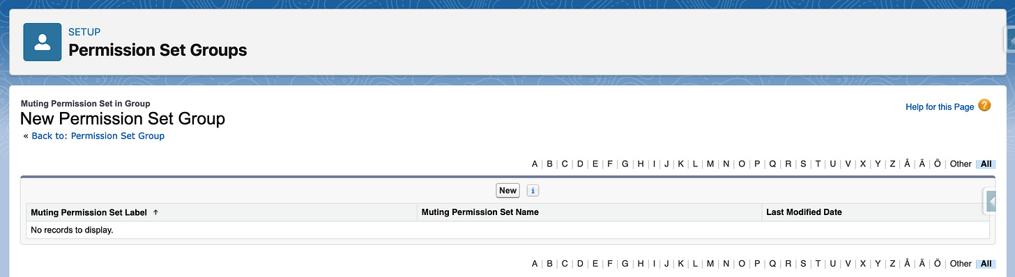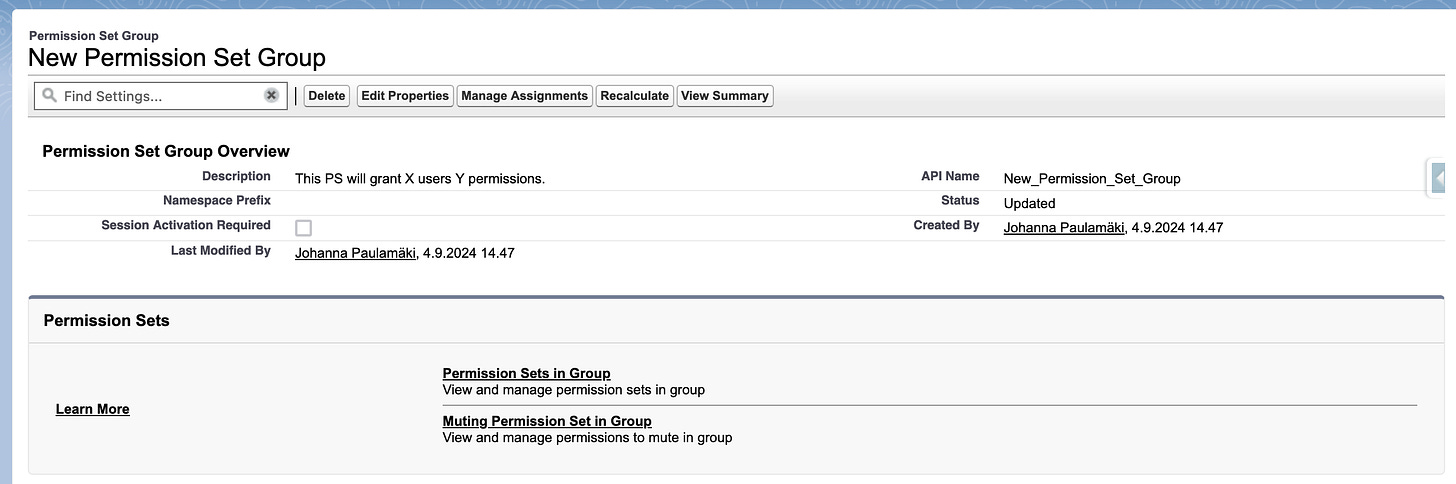 Another noteworthy thing is, that while we earlier set the New Permission Set to be a member of the New Permission Set Group, we only have one permission set assignment coming out of that.