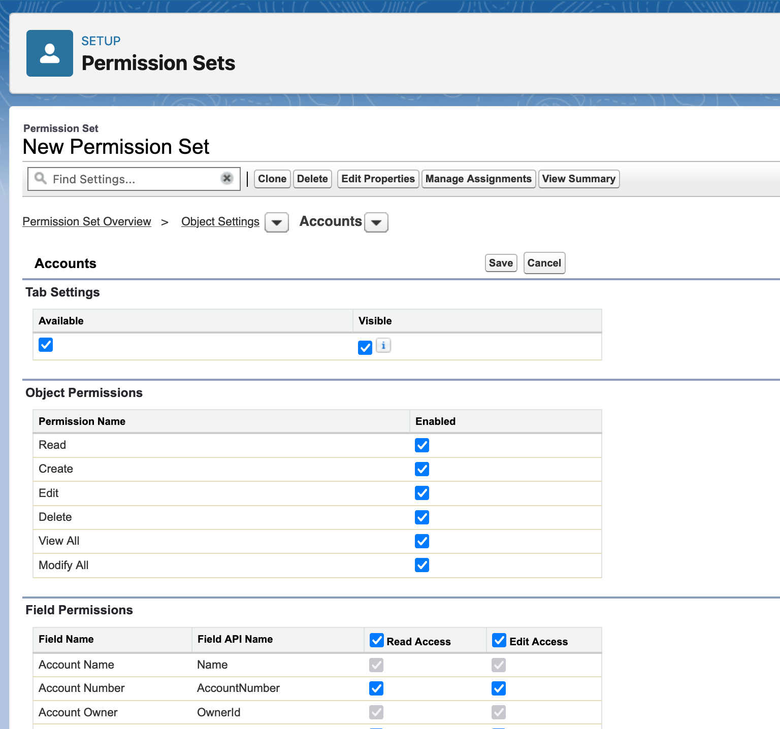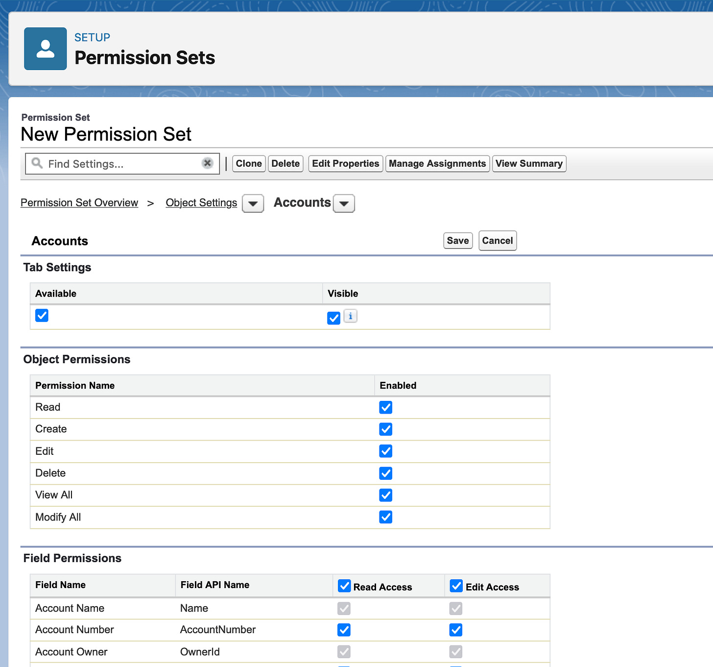 I'll jump to Permission Sets at this point, rather than continue with the Profiles, because under the hood, all permissions granted through profiles are actually granted through hidden permission sets.