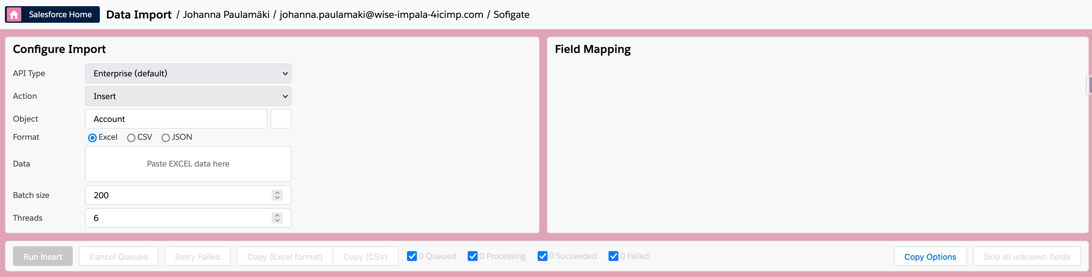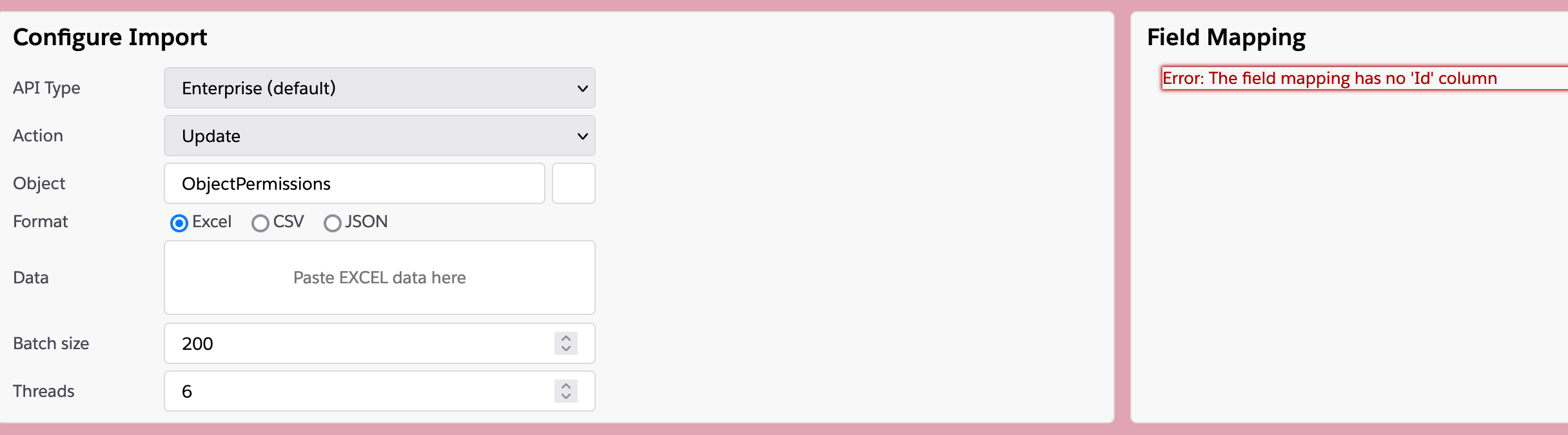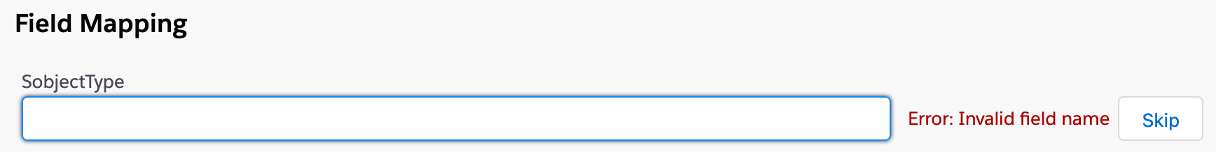 Now, only thing is that we don't want to change or even touch the SobjectType (funny how it's spelled every which way...) - so click on that, field on the top right then clear the field, which will cause an error, then hit the Skip button, which will then cause the column to be omitted.