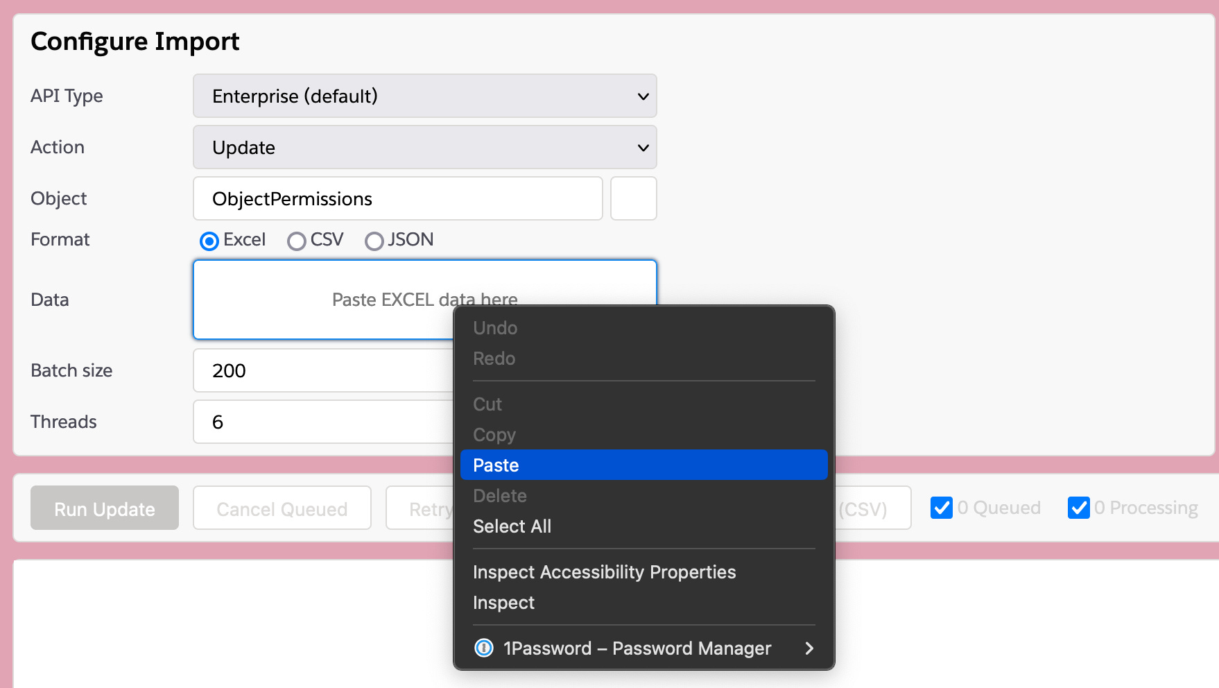 Once that's done, you can click on the "Paste EXCEL data here" area and cmd/ctrl+v the data in there, or in more civilized manner, right-click paste it in: