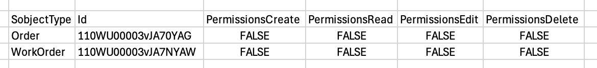 Okay. Now we've decided that we don't want the portal users to access, say, WorkOrders or Orders, both of seem to currently be accessible, having PermissionsCreate, PermissionsRead and PermissionsEdit as "true", and Orders also have Delete as true.